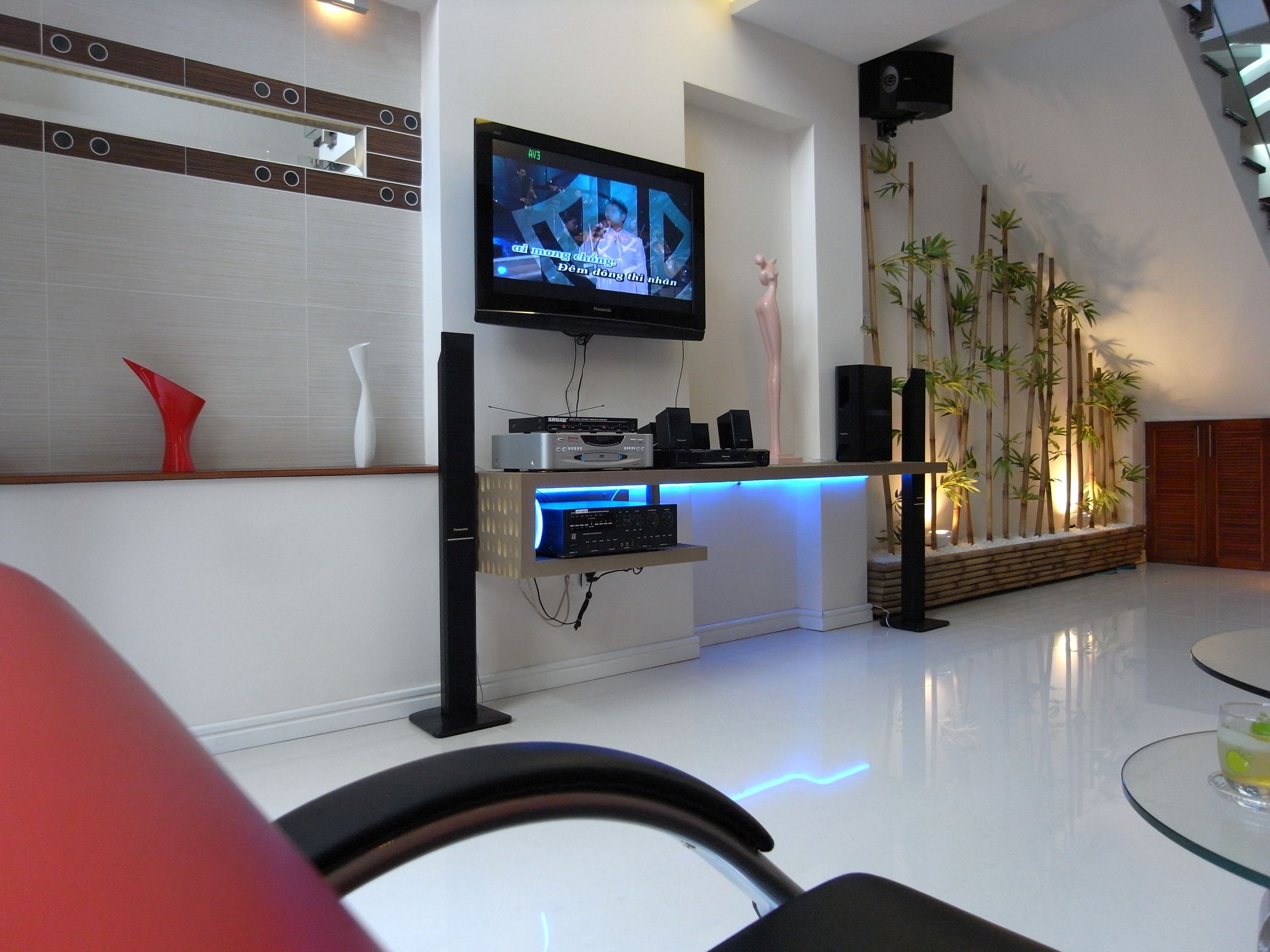 Kệ ti vi phòng khách và chi tiết trang trí dưới cầu thang